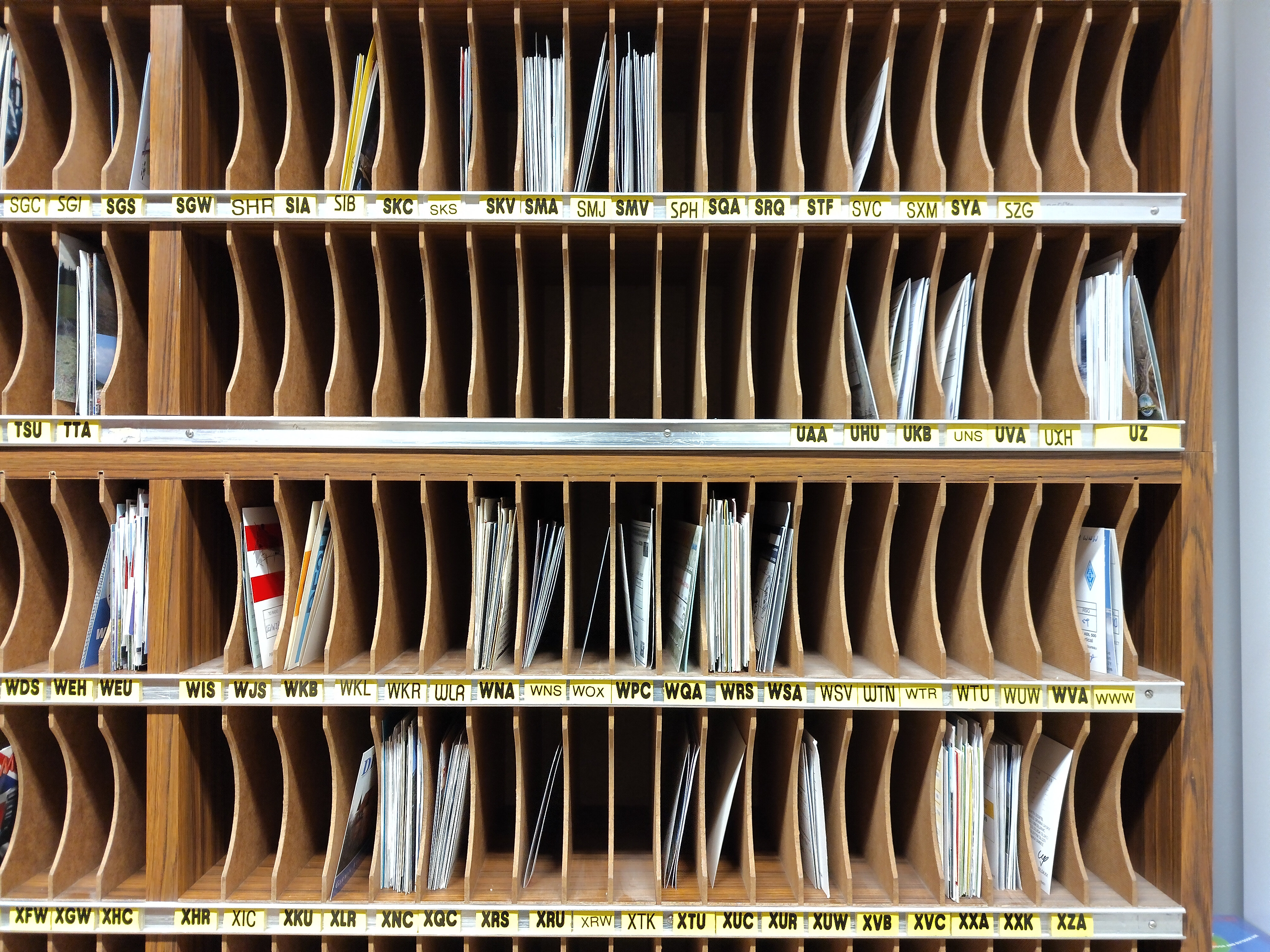 QSL Karten Fächer im Clublokal des LV1